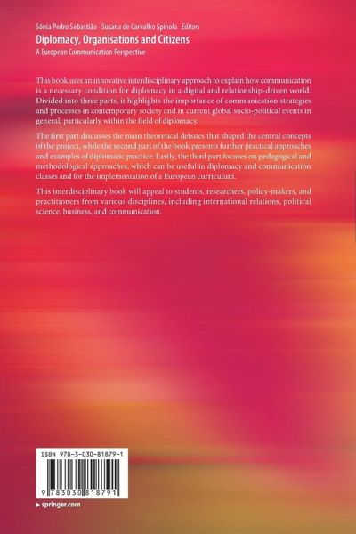 This book uses an innovative interdisciplinary approach to explain how communication is a necessary condition for diplomacy in a digital and relationship-driven world. Divided into three parts, it highlights the importance of communication strategies and processes in contemporary society and in current global socio-political events in general, particularly within the field of diplomacy.