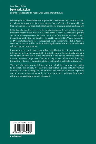 In cases where the practice takes place without a legal basis, this book aims to contribute to bridging the legal lacuna created by the rigid nature of international diplomaticlaw with the absolute nature of the inviolability of the mission premises facilitating the continuation of the practice of diplomatic asylum even where it is without legal foundation. It does so by proposing solutions to the problem of diplomatic asylum.