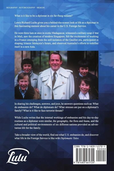 What is it like to be a diplomat in six far-flung nations? Lewis Richard Luchs gives you a behind-the-scenes look at life as a diplomat in this fascinating memoir about his career in the U.S. Foreign Service. He wore three hats at once in exotic Madagascar, witnessed a military coup d'état in Mali, saw the creation of modern Singapore, felt the excitement of working in a France emerging from the self-isolation of the Gaullist era, participated in shaping Islamic Malaysia's future, and observed Australia's efforts to redefine itself in a new Asia. In sharing his challenges, sorrows, and joys, he answers questions such as: What do embassies do? What do diplomats do? What stresses are put on a diplomat's family? What is it like to face terrorist threats? Take a broader view of the world, find out what U.S. embassies do, and discover what life in the Foreign Service is like with Diplomatic Tales.