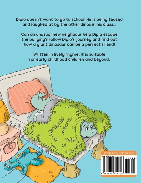 Diplo doesn't want to go to school. He is being teased and laughed at by the other dinos in his class. "Steggy is so mean to me, and Bronty says I smell!" Can an unusual new neighbor help Diplo escape the bullying? Follow Diplo's journey and find out how a giant dinosaur can be a perfect friend! This well-crafted and beautifully illustrated book invites discussion around the age-old topic of bullying. Parents and teachers can use this book as a springboard for dialogue around the different types of bullying and some strategies to help deal with it. Written in lively rhyme, it is suitable for early childhood children and beyond. Grab your copy before the price goes up!