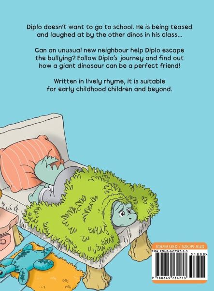 Diplo doesn't want to go to school. He is being teased and laughed at by the other dinos in his class. "Steggy is so mean to me, and Bronty says I smell!" Can an unusual new neighbor help Diplo escape the bullying? Follow Diplo's journey and find out how a giant dinosaur can be a perfect friend! This well-crafted and beautifully illustrated book invites discussion around the age-old topic of bullying. Parents and teachers can use this book as a springboard for dialogue around the different types of bullying and some strategies to help deal with it. Written in lively rhyme, it is suitable for early childhood children and beyond. Grab your copy before the price goes up!
