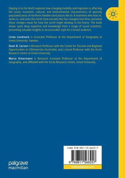 Dipping in to the North explores how changing mobility and migration is affecting the social, economic, cultural, and environmental characteristics of sparsely populated areas of northern Sweden (and places like it). It examines who lives in, works in, and visits the north; how and why this has changed over time; and what those changes mean for how the north might develop in the future. The book draws upon deep expertise and knowledge from a range of social scientists, presenting valuable insights in an accessible style for a broad audience.