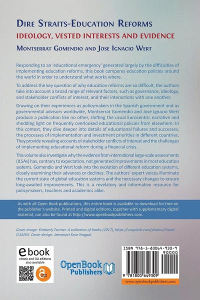 Responding to an 'educational emergency' generated largely by the difficulties of implementing education reforms, this book compares education policies around the world in order to understand what works where. To address the key question of why education reforms are so difficult, the authors take into account a broad range of relevant factors, such as governance, ideology, and stakeholder conflicts of interest, and their interactions with one another. Drawing on their experiences as policymakers in the Spanish government and as governmental advisors worldwide, Montserrat Gomendio and Jose Ignacio Wert produce a publication like no other, shifting the usual Eurocentric narrative and shedding light on frequently overlooked educational policies from elsewhere. In this context, they dive deeper into details of educational failures and successes, the processes of implementation and investment priorities in different countries. They provide revealing accounts of stakeholder conflicts of interest and the challenges of implementing educational reform during a financial crisis. The authors also investigate why the evidence from international large-scale assessments (ILSAs) has, contrary to expectation, not generated improvements in most education systems. Gomendio and Wert investigate the evolution of different education systems, closely examining their advances or declines. Gomendio and Wert's expert voices illuminate the current state of global education systems and the necessary changes to ensure long-awaited improvements. This is a revelatory and informative resource for policymakers, teachers and academics alike.