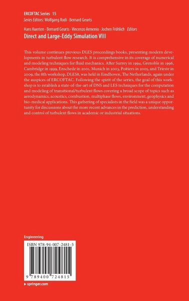 After Surrey in 1994, Grenoble in 1996, Cambridge in 1999, Enschede in 2001, Munich in 2003, Poitiers in 2005, and Trieste in 2009, the 8th workshop, DLES8, was held in Eindhoven, The Netherlands, again under the auspices of ERCOFTAC. Following the spirit of the series, the goal of this workshop is to establish a state-of-the-art of DNS and LES techniques for the computation and modeling of transitional/turbulent flows covering a broad scope of topics such as aerodynamics, acoustics, combustion, multiphase flows, environment, geophysics and bio-medical applications. This gathering of specialists in the field was a unique opportunity for discussions about the more recent advances in the prediction, understanding and control of turbulent flows in academic or industrial situations.