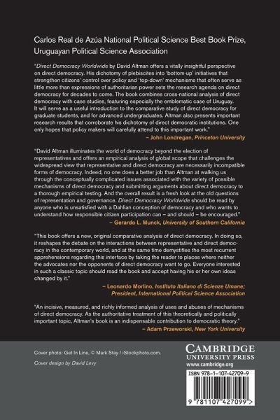 Challenging the common assumption that models of direct democracy and representative democracy are necessarily at odds, Direct Democracy Worldwide demonstrates how practices of direct and representative democracy interact under different institutional settings and uncovers the conditions that allow them to coexist in a mutually reinforcing manner. Whereas citizen-initiated mechanisms of direct democracy can spur productive relationships between citizens and political parties, other mechanisms of direct democracy often help leaders bypass other representative institutions, undermining republican checks and balances. The book also demonstrates that the embrace of direct democracy is costly, may generate uncertainties and inconsistencies, and can be manipulated. Nonetheless, the promise of direct democracy should not be dismissed. Direct democracy is much more than a simple, pragmatic second choice when representative democracy seems not to be working as expected. Properly designed, it can empower citizens, breaking through some of the institutionalized barriers to accountability that arise in representative systems.