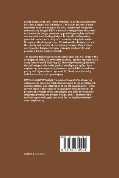 Direct Engineering: Toward Intelligent Manufacturing addresses the following recent topics related to the development, implementation, and integration of the DE environment: (1) the current scope of the research in intelligent manufacturing; (2) the results of the technologies and tools developed for integrated product and process designs, and (3) examination of the methodologies and algorithms used for the implementation of direct engineering.