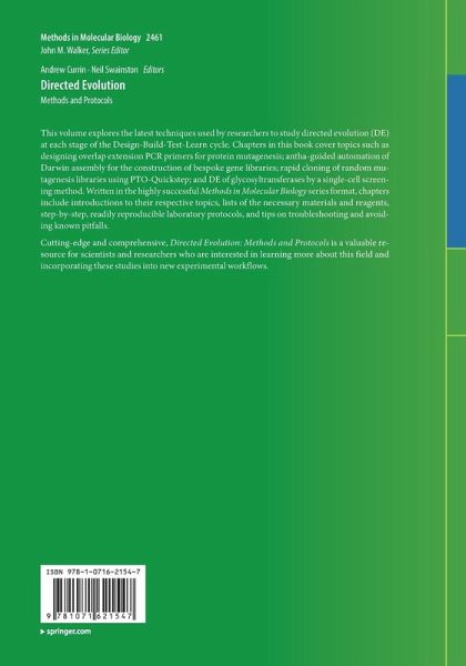 Cutting-edge and comprehensive, Directed Evolution: Methods and Protocols is a valuable resource for scientists and researchers who are interested in learning more about this field and incorporating these studies into new experimental workflows.