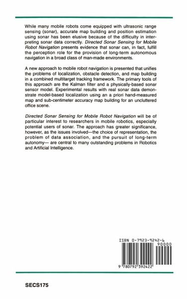 This monograph is a revised version of the D.Phil. thesis of the first author, submitted in October 1990 to the University of Oxford. This work investigates the problem of mobile robot navigation using sonar. We view model-based navigation as a process of tracking naturally occurring environment features, which we refer to as "targets". Targets that have been predicted from the environment map are tracked to provide that are observed, but not predicted, vehicle position estimates. Targets represent unknown environment features or obstacles, and cause new tracks to be initiated, classified, and ultimately integrated into the map. Chapter 1 presents a brief definition of the problem and a discussion of the basic research issues involved. No attempt is made to survey ex haustively the mobile robot navigation literature-the reader is strongly encouraged to consult other sources. The recent collection edited by Cox and Wilfong [34] is an excellent starting point, as it contains many of the standard works of the field. Also, we assume familiarity with the Kalman filter. There are many well-known texts on the subject; our notation derives from Bar-Shalom and Fortmann [7]. Chapter 2 provides a detailed sonar sensor model. A good sensor model of our approach to navigation, and is used both for is a crucial component predicting expected observations and classifying unexpected observations.