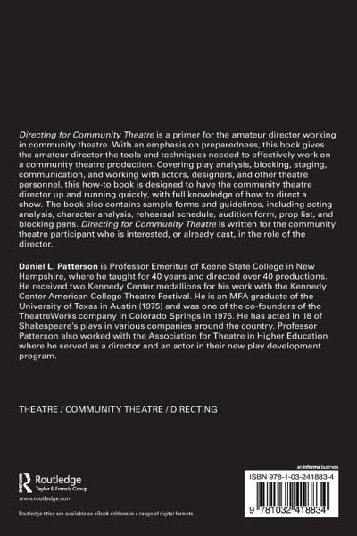 Directing for Community Theatre is a primer for the amateur director working in community theatre. With an emphasis on preparedness, this book gives the amateur director the tools and techniques needed to effectively work on a community theatre production.