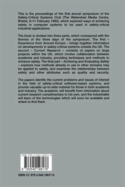 0 e This is the proceedings of the first annual symposium of the Safety-critical Systems Club (The Watershed Media Centre, Bristol, 9-11 February 1993), which provided a forum for exploring and discussing ways of achieving safety in computer systems to be used in safety-critical industrial applications. The book is divided into three parts, which correspond with the themes of the three days of the symposium. The first - Experience from Around Europe - brings together information on developments in safety-critical systems outside the UK. The second - Current Research - consists of papers on large projects within the UK, which involve collaboration between academia and industry, providing techniques and methods to enhance safety. The final part - Achieving and Evaluating Safety - explores how methods already in use in other domains may be applied to safety, and examines the relationships between safety and other attributes such as quality and security. The papers identify the current problems and issues of interest in the field of safety-critical software-based systems, and provide valuable up-to-date material for those in both academia and industry. The academic will benefit from information about current research complimentary to his own, and the industrialist will learn of the technologies which will soon be available and where to find them.