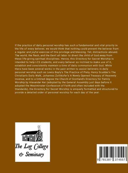 While personal/private worship is paramount in the life of every believer, it should never be forgotten that all of life is worship for the child of God. Devotional exercises are only part of the believer's walk with God. One's relationship with God cannot be compartmentalized but encompasses every aspect of life. Work, recreation, relationships - everything in which the believer engages is to be done for the glory of God and becomes an ipso facto act of worship. Given its unique format, the Directory may be used profitably year after year. Look upon it as a well-worn path leading to the "wilderness," "garden," and "mountain" where sweet communion with God may be found.