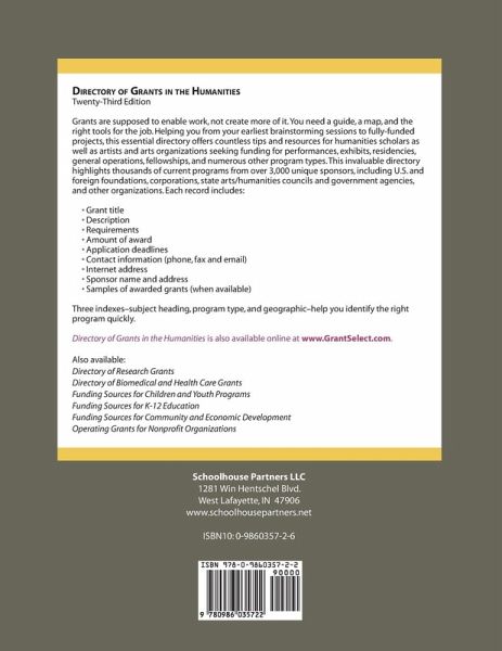 Grants are supposed to enable work, not create more of it. You need a guide, a map, and the right tools for the job. Helping you from your earliest brainstorming sessions to fully funded projects, this essential directory offers countless tips and resources for humanities scholars as well as artists, and arts organizations seeking funding for performances, exhibits, residencies, general operations, fellowships, and numerous other program types. This invaluable directory highlights thousands of current programs from over 3,000 sponsors, including U.S. and foreign foundations, corporations, state arts councils and government agencies and other organizations.