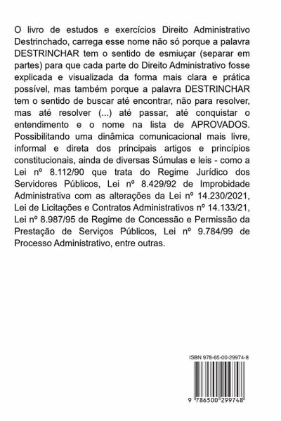 O livro de estudos e exercícios Direito Administrativo Destrinchado, carrega esse nome não só porque a palavra DESTRINCHAR tem o sentido de esmiuçar (