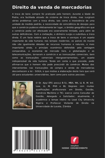A troca de bens sempre foi praticada pelo homem; durante a Idade da Pedra, era facilitada através do sistema de troca direta, mas surgiram vários problemas com a troca direta, tais como a inexistência de uma unidade de medida padrão, a necessidade de coincidência de desejos para que o comércio pudesse efetivamente ter lugar, o âmbito geográfico em que o comércio podia ser efectuado era severamente limitado, para além de outras deficiências. Com a civilização, o dinheiro surgiu e substituiu a troca direta. É um facto notório que a troca de bens e serviços é um aspeto importante da vida humana; nos tempos modernos, os países do mundo não são igualmente dotados de recursos humanos e naturais, e mais importante ainda, o princípio económico defendido pela vantagem comparativa, a economia de mercado livre, a globalização e as telecomunicações, tornaram o comércio e as transacções comerciais, bem como as transacções comerciais intergovernamentais, um aspeto indispensável da vida humana. Tendo em conta o que precede, pode afirmar-se que o homem não pode prescindir do comércio. Muitos dos intervenientes nas transacções de compra e venda de mercadorias desconhecem a lei - SOGA, o que motiva a elaboração deste livro que será útil para estudantes universitários, bem como para outras pessoas.