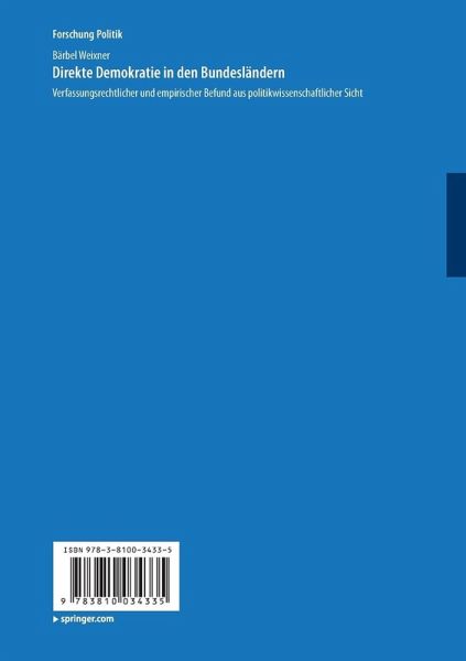 Das Buch beschäftigt sich mit der aktuellen Thematik der direkten Demokratie und beleuchtet dabei ausschließlich die Landesebene. Als Forschungsaufgabe wird dabei die vollständige Erfassung aller plebiszitären Ansätze in den Ländern der Bundesrepublik Deutschland seit 1945 gesehen. Neben den historischen Komponenten der Beteiligung des Volkes an Verfassungsgebung und Länderbildung, steht zum einen der normative Ist-Zustand im Mittelpunkt. Im Ländervergleich werden plebiszitäre Instrumente zur Verfassungsänderung oder Gesetzgebung sowie bei Personalentscheidungen anhand politikwissenschaftlicher Kritierien erläutert und in zahlreichen Schaubildern zusammenfassend veranschaulicht. Zum anderen werden alle bisher auf Landesebene angestrebten Volksbegehren empirisch erfasst und nach thematischen, regionalen und zeitlichen Schwerpunkten analysiert. Damit entsteht ein Überblicks- und Nachschlagewerk, das versuchen will, bestehende Forschungslücken zur direkten Demokratie auf Landesebene zu schließen und gleichzeitig Argumentationshilfen bietet für die aktuelle Diskussion um die Einführung des bundesweiten Volksentscheids.