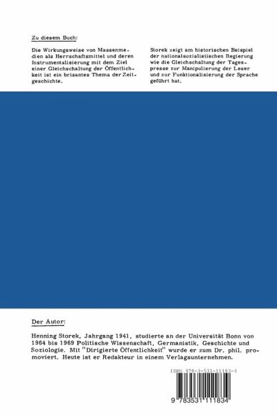 Die vorliegende Arbeit zur Gleichschaltung und Manipulation der Presse im Dritten Reich verdient unter verschiedenen Aspekten Beachtung. Sie leistet einen Beitrag zu der historisch-politischen Diskussion, die noch vier Jahrzehnte nach dem Zusammenbruch der ersten deutschen Repu blik unvermindert fortdauert, so viele und wichtige Untersuchungen und Darstellungen inzwischen, nicht zuletzt zum Thema Publizistik und NS Regime, erschienen sind. Es handelt sich um einen zentralen Bereich des Machtergreifungs- und Konsolidierungsprozesses, iiber den das na tionalsozialistische Herrschaftssystem so unerwartet rasch und total in Deutschland durchgesetzt wurde. Die Analyse der ausgedehnten Litera tur und des teilweise unveroffentlichten Materials HUH erkennen, welche strukturellen Voraussetzungen lind konkreten Eingriffe jene Gleichschal tung ermoglichten. Dabei tritt eine bemerkenswerte Kontinuitat im Uber gang von der Republik zur Diktatur hervor, die auch fUr andere politische und gesellschaftliche Bereiche der natio'nalsozialistischen Machtbefesti gung bezeichnend erscheint. Man mag kritisch bemerken, daB dabei die revolutionaren Komponenten im pseudolegal verhiillten ProzeB der Machtergreifung unterschatzt wer de: Folge eines zu engen Revolutionsbegriffs. Doch eroffnet die Hervor hebung des Moments der Kontinuitat zugleich instruktive Einblicke in den Charakter und die Funktion eines Pressewesens, dessen rasch erreichte Lenkbarkeit die Folge einer weitgehenden Selbstgleichschaltung wa- darin typisch fUr die geistige Kapitulation in Deutschland 1933/34. Die iiberwaltigende Rolle, die dabei Druck und Gewalt, Kampfideologie und VerfUhrung, freilich auch Opportunismus, gespielt haben, ist nicht zu iibersehen.