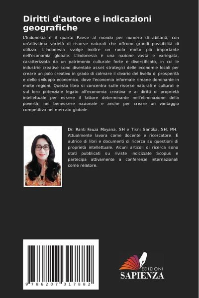 L'Indonesia è il quarto Paese al mondo per numero di abitanti, con un'altissima varietà di risorse naturali che offrono grandi possibilità di utilizzo. L'Indonesia svolge inoltre un ruolo molto più importante nell'economia globale. L'Indonesia è una nazione vasta e variegata, caratterizzata da un patrimonio culturale forte e diversificato, in cui le industrie creative sono diventate asset strategici delle economie locali per creare un polo creativo in grado di colmare il divario del livello di prosperità e dello sviluppo economico, dove l'economia informale rimane dominante in molte regioni. Questo libro si concentra sulle risorse naturali e culturali e sul loro potenziale legato all'economia creativa e ai diritti di proprietà intellettuale per essere il fattore determinante nell'eliminazione della povertà, nel benessere nazionale e anche per creare un vantaggio competitivo nel mercato globale.