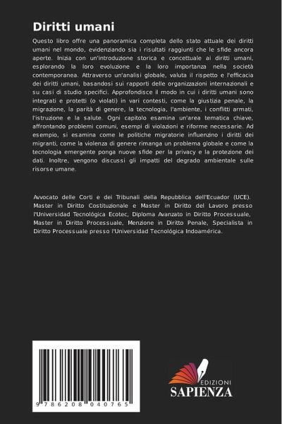 Questo libro offre una panoramica completa dello stato attuale dei diritti umani nel mondo, evidenziando sia i risultati raggiunti che le sfide ancora aperte. Inizia con un'introduzione storica e concettuale ai diritti umani, esplorando la loro evoluzione e la loro importanza nella società contemporanea. Attraverso un'analisi globale, valuta il rispetto e l'efficacia dei diritti umani, basandosi sui rapporti delle organizzazioni internazionali e su casi di studio specifici. Approfondisce il modo in cui i diritti umani sono integrati e protetti (o violati) in vari contesti, come la giustizia penale, la migrazione, la parità di genere, la tecnologia, l'ambiente, i conflitti armati, l'istruzione e la salute. Ogni capitolo esamina un'area tematica chiave, affrontando problemi comuni, esempi di violazioni e riforme necessarie. Ad esempio, si esamina come le politiche migratorie influenzino i diritti dei migranti, come la violenza di genere rimanga un problema globale e come la tecnologia emergente ponga nuove sfide per la privacy e la protezione dei dati. Inoltre, vengono discussi gli impatti del degrado ambientale sulle risorse umane.