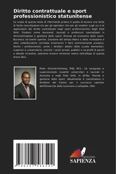 Lo scopo di questo testo di riferimento pratico è quello di essere una fonte di facile consultazione sia per gli operatori che per gli studiosi sugli usi e le applicazioni del diritto contrattuale negli sport professionistici degli Stati Uniti. Studiosi come laureandi, laureati e professori specializzati in Amministrazione e gestione dello sport, Finanza ed economia dello sport, Business ed eventi sportivi, Gestione del tempo libero e della ricreazione e altre sottodiscipline correlate troveranno il libro estremamente prezioso. Anche i professionisti, come i direttori atletici delle scuole elementari, superiori e universitarie, nonché i centri privati, pubblici e no-profit di parchi e attività ricreative, potranno trovare immenso valore nell'utilizzo di questo breve libro.