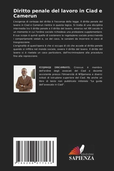 L'esigenza di certezza del diritto è l'essenza della legge. Il diritto penale del lavoro in Ciad e Camerun rientra in questa logica. Si tratta di una disciplina intermedia tra il diritto penale e il diritto del lavoro, emersa nel XIX secolo in un momento in cui l'ordine sociale richiedeva una protezione supplementare. Il suo scopo è quindi quello di sostenere la regolazione sociale prescrivendo i comportamenti vietati e, se del caso, le sanzioni da incorrere in caso di trasgressione.L'originalità di quest'opera è che si occupa di ciò che accade al diritto penale quando si infiltra nel mondo sociale, ovvero il diritto del lavoro. Il diritto del lavoro si è rivelato un caso particolare, dall'incriminazione alla procedura fino alla repressione.