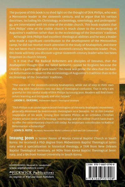 The purpose of this book is to shed light on the thought of Dirk Philips, who was a Mennonite leader in the sixteenth century, and to argue that his various doctrines, including his Christology, ecclesiology, soteriology, and anthropology, are interrelated with his view of the visible church. This book explains that Dirk Philips' view of the visible church is much closer to the ecclesiology of Augustine's tradition rather than to the ecclesiology of the Donatists' tradition. Although Dirk Philips had excellent theological abilities and he was a leader who made a significant contribution to the development of the Mennonites camp, he did not receive much attention in the study of Anabaptists, and there has not been much research on this sixteenth-century Mennonite leader. Thus, this book will help you discover a great sixteenth-century leader who has been forgotten in church history. Is it true that the Radical Reformers are disciples of Donatus, that the Anabaptists thought that the failed believers cannot be forgiven because the church is a gathering of pure souls? This book will probe the idea that the Radical Reformation is closer to the ecclesiology of Augustine's tradition than to the ecclesiology of the Donatists' tradition.