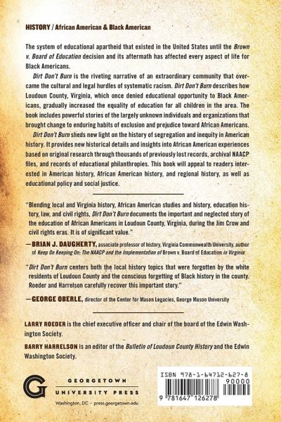 This inspiring, true story of a Black community sheds new light on the history of segregation and inequity in American education The system of educational apartheid that existed in the United States until the Brown v. Board of Education decision and its aftermath has affected every aspect of life for Black Americans. Dirt Don't Burn is the riveting narrative of an extraordinary community that overcame the cultural and legal hurdles of systematic racism. Dirt Don't Burn describes how Loudoun County, Virginia, which once denied educational opportunity to Black Americans, gradually increased the equality of education for all children in the area. The book includes powerful stories of the largely unknown individuals and organizations that brought change to enduring habits of exclusion and prejudice toward African Americans. Dirt Don't Burn sheds new light on the history of segregation and inequity in American history. It provides new historical details and insights into African American experiences based on original research through thousands of previously lost records, archival NAACP files, and records of educational philanthropies. This book will appeal to readers interested in American history, African American history, and regional history, as well as educational policy and social justice.