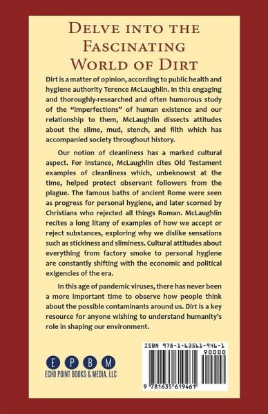 Delve Into the Fascinating World of Dirt Dirt is a matter of opinion, according to public health and hygiene authority Terence McLaughlin. In this engaging, thoroughly-researched, and often humorous study of the "imperfections" of human existence and our relationship to them, McClaughlin dissects human attitudes about the slime, mud, stench and filth which has accompanied society through history. Our notion of cleanliness has a marked cultural aspect. For instance, McLaughlin cites Old Testament examples of cleanliness which, unbeknownst at the time, helped protect observant followers from the plague. The famous baths of ancient Rome were seen as progress for personal hygiene, and later scorned by Christians who rejected all things Roman. McLaughlin recites a long litany of examples of how we accept or reject substances, exploring why we dislike sensations such as stickiness and sliminess. Cultural attitudes about everything from factory smoke to personal hygiene are constantly shifting with the economic and political exigencies of the era. In this age of pandemic viruses, there has never been a more important time to observe how people think about the possible contaminants around us. Dirt is a key resource for anyone wishing to understand humanity's role in shaping our environment. This title is also available from Echo Point Books in hardcover, ISBN 1635619459.