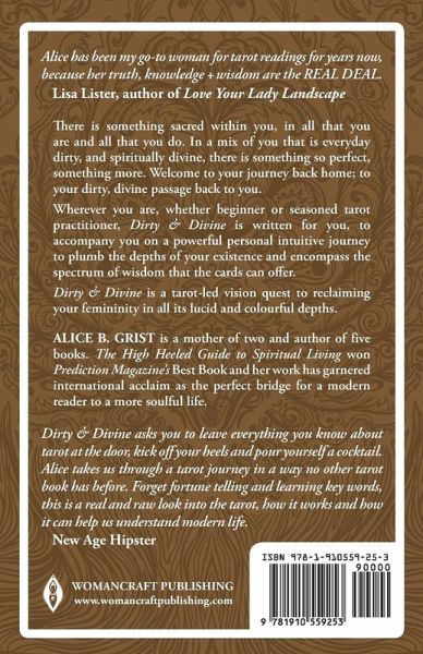 There is something sacred within you, in all that you are and all that you do. In a mix of you that is everyday dirty, and spiritually divine, there is something so perfect, something more. Welcome to your journey back home; to your dirty, divine passage back to you. Wherever you are, whether beginner or seasoned tarot practitioner, Dirty & Divine is written for you, to accompany you on a powerful personal intuitive journey to plumb the depths of your existence and encompass the spectrum of wisdom that the cards can offer. Dirty & Divine is a tarot-led vision quest to reclaiming your femininity in all its lucid and colourful depths.