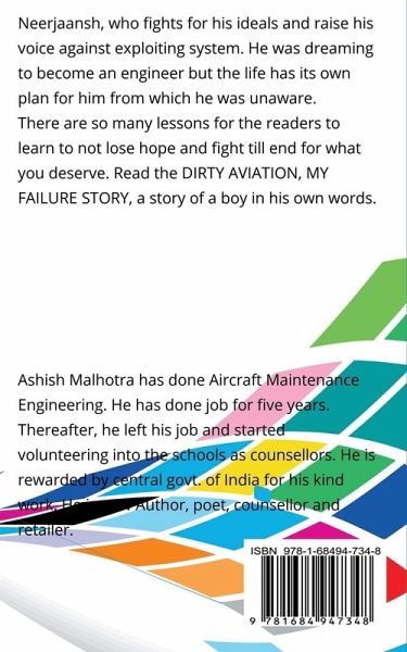 Neerjaansh, who fights for his ideals and raise his voice against exploiting system. He was dreaming to become an engineer but the life has its own plan for him from which he was unaware. Instead of all that was happening in a job, he has not lose hope to fight. He fights again and again and finally achieve a permanent job. But suddenly he resigned and started a new journey. He has set some new goals. There are so many lessons for the readers to learn to not lose hope and fight till end for what you deserve. Read the DIRTY AVIATION, MY FAILURE STORY, a story of a boy in his own words. .