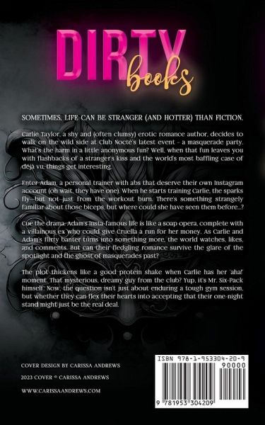WELCOME TO "DIRTY BOOKS," THE LAUGH-OUT-LOUD 2ND INSTALLMENT IN THE ONE NIGHT STAND CLUB SERIES THAT PROVES SOMETIMES, LIFE CAN BE STRANGER (AND HOTTER) THAN FICTION. Carlie Taylor, a shy and (often clumsy) erotic romance author, decides to walk on the wild side at Club Nocté's latest event - a masquerade party. What's the harm in a little anonymous fun? Well, when that fun leaves you with flashbacks of a stranger's kiss and the world's most baffling case of déjà vu, things get interesting. Enter Adam, a personal trainer with abs that deserve their own Instagram account (oh wait, they have one). When he starts training Carlie, the sparks fly-but not just from the workout burn. There's something strangely familiar about those biceps, but where could she have seen them before...? Cue the drama: Adam's Insta-famous life is like a soap opera, complete with a villainous ex who could give Cruella a run for her money. As Carlie and Adam's flirty banter turns into something more, the world watches, likes, and comments. But can their fledgling romance survive the glare of the spotlight and the ghost of masquerades past? The plot thickens like a good protein shake when Carlie has her 'aha!' moment. That mysterious, dreamy guy from the club? Yup, it's Mr. Six-Pack himself. Now, the question isn't just about enduring a tough gym session, but whether they can flex their hearts into accepting that their one-night stand might just be the real deal. Start reading "Dirty Books" now and get ready for a story that's part romance, part comedy, and all kinds of steamy gym sessions. Who knew love could be a workout in itself?