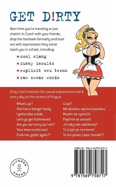 GET D!RTY Next time you're traveling or just chattin' in Czech with your friends, drop the textbook formality and bust out with expressions they never teach you in school, including: • Cool slang • Funny insults • Explicit sex terms • Raw swear words Dirty Czech teaches the casual expressions heard every day on the streets of the Czech Republic: What's up? — Co je? I adore your small titties — Zboznuju tvoje kuzlatka. I gotta take a leak. — Musim se vymocit. Your team sucks ass! — Tvuj tym je na hovno! Drop Dead you freak! — Chcipni, ty zrudo! I'm faded. — Jsem namazenej. Are you as horny as I am? — Jsi taky tak nadrzenej