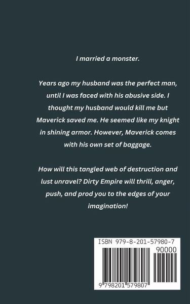 I married a monster. Years ago my husband was the perfect man, until I was faced with his abusive side. I thought my husband would kill me but Maverick saved me. He seemed like my knight in shining armor. However, Maverick comes with his own set of baggage. How will this tangled web of destruction and lust unravel? Dirty Empire will thrill, anger, push, and prod you to the edges of your imagination!