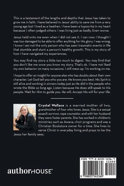 This is a testament of the lengths and depths that Jesus has taken to grow me in faith. I have believed in Jesus' ability to save me from a very young age but I lived as a heathen. I have been a hypocrite in my heart because I often judged others. I was living just as badly. Even worse. Jesus held onto me even when I did not see it. I can now. I thought I was too damaged to be able to offer anything for His glory. I was wrong. I know I am not the only person who has seen traumatic events in life that stumble and stunt a person's healthy growth. This is my story of how I have navigated my experiences. You may find my story a little too much to digest. You may find that you don't like me once you know my story. That's ok. I have not liked my own behavior on many occasions. I still mess up. I'm working on me. I hope to offer an insight for anyone else who has doubts about their own character. Let God tell you who you are. He knows you best. His Spirit is still alive and working in sinners today just as He did in the people who wrote the Bible so long ago. Listen because He does still speak to His people. Wait for Him to guide you. He will. Accept His will for your life