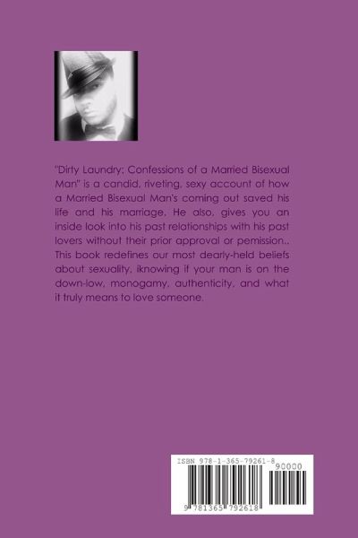 "Dirty Laundry: Confessions of a Married Bisexual Man" is a candid, riveting, sexy, account of how a Married Bisexual Man's coming out saved his life and his marriage. He also, gives you an inside look into his past relationships with his past lovers without their prior permissions or approvals. This book redefines our most dearly-held beliefs about sexuality, knowing if your man is living on the down-low, monogamy, authenticity, and what it truly means to love someone.