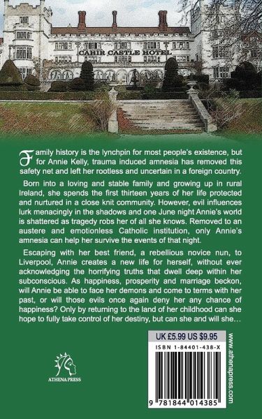 Family history is the lynchpin for most people's existence, but for Annie Kelly, trauma induced amnesia has removed this safety net and left her rootless and uncertain in a foreign country. Born into a loving and stable family and growing up in rural Ireland, she spends the first thirteen years of her life protected and nurtured in a close knit community. However, evil influences lurk menacingly in the shadows and one June night Annie's world is shattered as tragedy robs her of all she knows. Removed to an austere and emotionless Catholic institution, only Annie's amnesia can help her survive the events of that night. Escaping with her best friend, a rebellious novice nun, to Liverpool, Annie creates a new life for herself, without ever acknowledging the horrifying truths that dwell deep within her subconscious. As happiness, prosperity and marriage beckon, will Annie be able to face her demons and come to terms with her past, or will those evils once again deny her any chance of happiness? Only by returning to the land of her childhood can she hope to fully take control of her destiny, but can she and will she.