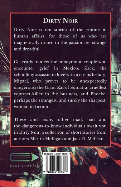 Dirty Noir is ten stories of the riptide in human affairs, for those of us who are magnetically drawn to the passionate, strange and dreadful. Get ready to meet the honeymoon couple who encounter grief in Mexico; Zack, the schoolboy assassin in love with a circus beauty; Miguel, who proves to be unexpectedly dangerous; the Giant Rat of Sumatra, cruellest contract-killer in the business, and Phoebe, perhaps the strangest, and surely the sharpest, woman in fiction. These and many other mad, bad and too-dangerous-to-know individuals await you in Dirty Noir, a collection of short stories from authors Martin Mulligan and Jack D. McLean.