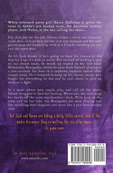 When reformed party girl Haven Callahan is given the reins to daddy's pro hockey team, she discovers veteran player, Jack Nolan, is the one calling the shots... Thrust into the role of team owner, Haven strikes a hasty but lucrative trade deal, only to discover her new star forward and the sexy groomsman she hooked up with at a friend's wedding are one and the same man. At thirty-two, Jack knows if he's going to have his chance at the Stanley Cup, it's now or never. But instead of landing a spot on his dream team, he winds up traded to the last-place Milwaukee Renegades, where he soon finds himself playing to a non-existent fan base in a rundown stadium named after crappy pizza. He's tempted to hang up his skates, except he's fought for everything he has and he isn't about to give up without a fight. In a sport where men coach, play, and call all the shots, Haven struggles to find her footing. Worse yet, she can't keep her hands off the team merchandise-Jack. With Jack on the team and on her side, the Renegades are soon playing less like middling beer-leaguers and more like a pro-level hockey club. But Jack and Haven are hiding a dirty little secret, and if the media finds out they're melting the ice after hours, it's game over.