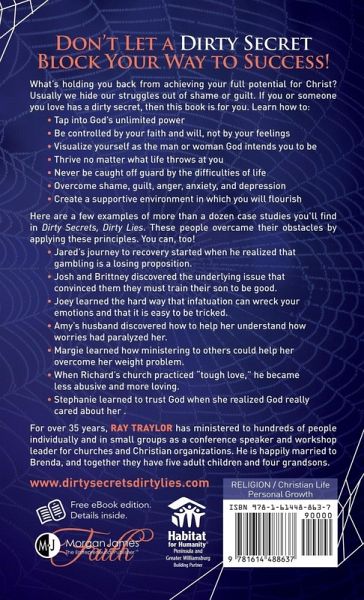 Most people are defeated in their Christian walk by one or two things that they never seem to overcome. They usually make excuses for it, cover it up, and justify themselves by comparing themselves with others. Dirty Secrets, Dirty Lies reveals how to have victory over whatever holds you back through Biblical principles and many practical examples. This book takes the lofty ideals of Scripture and makes them practical for everyone.