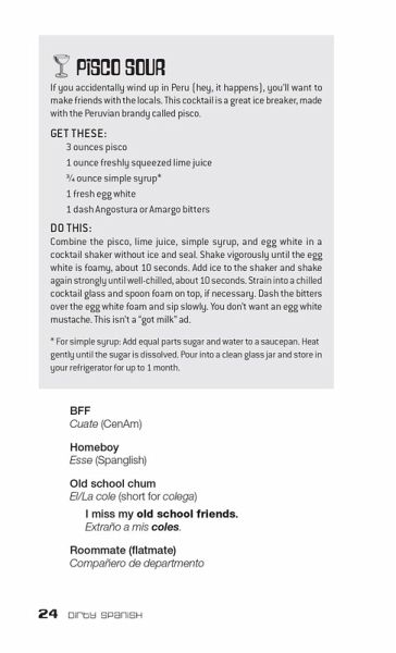 You already know enough Spanish to get by, but you want to be able to tell those inside jokes, greet your friends in a laid-back manner, and casually pick someone up at a bar. From "What's up?" to "Wanna go home with me?" Dirty Spanish will teach you how to speak like you're a regular on the streets of Madrid or Buenos Aires. But you'll also discover material that goes beyond a traditional phrasebook, including: * Hilarious insults * Provocative facts * Explicit swear words * Themed Spanish cocktails * And more! Next time you're traveling to Spain, Mexico, or Argentina, pick up this book, drop the textbook formality, and get dirty!