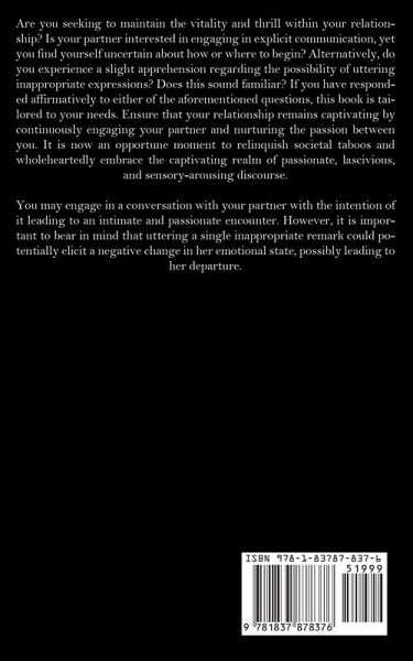Are you seeking to maintain the vitality and thrill within your relationship? Is your partner interested in engaging in explicit communication, yet you find yourself uncertain about how or where to begin? Alternatively, do you experience a slight apprehension regarding the possibility of uttering inappropriate expressions? Does this sound familiar? If you have responded affirmatively to either of the aforementioned questions, this book is tailored to your needs. Ensure that your relationship remains captivating by continuously engaging your partner and nurturing the passion between you. It is now an opportune moment to relinquish societal taboos and wholeheartedly embrace the captivating realm of passionate, lascivious, and sensory-arousing discourse. You may engage in a conversation with your partner with the intention of it leading to an intimate and passionate encounter. However, it is important to bear in mind that uttering a single inappropriate remark could potentially elicit a negative change in her emotional state, possibly leading to her departure.