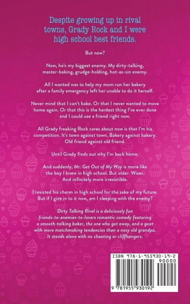Despite growing up in rival towns, Grady Rock and I were high school best friends. But now? Now, he's my biggest enemy. My dirty-talking, master-baking, grudge-holding, hot-as-sin enemy. All I wanted was to help my mom run her bakery after a family emergency left her unable to do it herself. Never mind that I can't bake. Or that I never wanted to move home again. Or that this is the hardest thing I've ever done and I could use a friend right now. All Grady freaking Rock cares about now is that I'm his competition. It's town against town. Bakery against bakery. Old friend against old friend. Until Grady finds out why I'm back home. And suddenly, Mr. Get Out of My Way is more like the boy I knew in high school. But older. Wiser. And infinitely more irresistible. I resisted his charm in high school for the sake of my future. But if I give in to it now, am I sleeping with the enemy? Dirty Talking Rival is a deliciously fun friends-to-enemies-to-lovers romantic comedy featuring a smooth-talking baker, the one who got away, and a goat with more matchmaking tendencies than a nosy old grandpa. It stands alone with no cheating or cliffhangers.