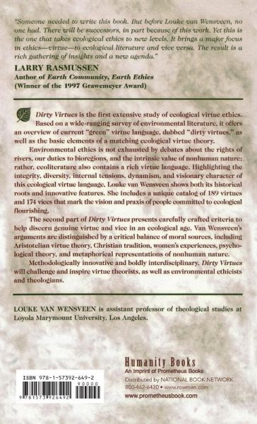 This is the first extensive study of ecological virtue ethics and the new rhetoric of environmentalists. Based on a wide-ranging survey of environmental literature, Louke van Wensveen offers an overview of current "green" virtue language and proposes the basic elements of a matching ecological virtue theory, dubbed "dirty virtues" by ecological philosophers.Environmental ethics is not exhausted by debates about the need to preserve rivers, our duties to bioregions, and the intrinsic value of nonhuman nature; rather, ecoliterature also contains a rich virtue language. Highlighting the integrity, diversity, internal tensions, dynamism, and visionary character of this ecological virtue language, the author shows both its historical roots and innovative features. Van Wensveen illustrates a widespread awareness of attitudes and habits that help or harm our relations with the nonhuman world. She includes a unique catalog of 189 virtues and 174 vices that mark the vision and praxis of people committed to ecological flourishing.The second part of Dirty Virtues presents carefully crafted criteria to help discern genuine virtue and vice in an ecological age. Her arguments are distinguished by a critical balance of moral sources, including Aristotelian virtue theory, Christian tradition, women's experiences, psychological theory, and metaphorical representations of nonhuman nature.Methodologically innovative and boldly interdisciplinary, Dirty Virtues will challenge and inspire virtue theorists, as well as environmental ethicists and theologians.