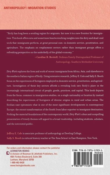 Dirty Work explores the lives and work of recent immigrants from Africa, Asia, and elsewhere to the southern Italian region of Sicily. Using extensive research, Cole and Booth focus on the experiences of foreigners employed in domestic service, prostitution, and agriculture.