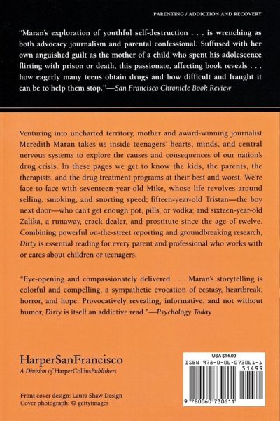 Venturing into uncharted territory, mother and award-winning journalist Meredith Maran takes us inside teenagers' hearts, minds, and central nervous systems to explore the causes and consequences of our nation's drug crisis. In these pages we get to know the kids, the parents, the therapists, and the drug treatment programs at their best and worst. We're face-to-face with seventeen-year-old Mike, whose life revolves around selling, smoking, and snorting speed; fifteen-year-old Tristan -- the boy next door -- who can't get enough pot, pills, or vodka; and sixteen-year-old Zalika, a runaway, crack dealer, and prostitute since the age of twelve. Combining powerful on-the-street reporting and groundbreaking research, Dirty is essential reading for every parent and professional who works with or cares about children or teenagers.