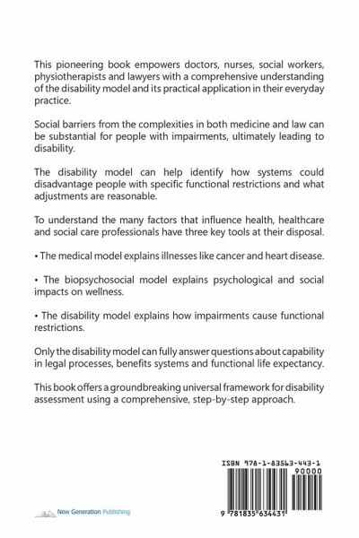 This pioneering book empowers doctors, nurses, social workers, physiotherapists and lawyers with a comprehensive understanding of the disability model and its practical application in their everyday practice. Social barriers from the complexities in both medicine and law can be substantial for people with impairments, ultimately leading to disability. The disability model can help identify how systems could disadvantage people with specific functional restrictions and what adjustments are reasonable. To understand the many factors that influence health, healthcare and social care professionals have three key tools at their disposal. ¿ The medical model explains illnesses like cancer and heart disease. ¿ The biopsychosocial model explains psychological and social impacts on wellness. ¿ The disability model explains how impairments cause functional restrictions. Only the disability model can fully answer questions about capability in legal processes, benefits systems and functional life expectancy. This book offers a ground-breaking universal framework for disability assessment using a comprehensive, step-by-step approach.
