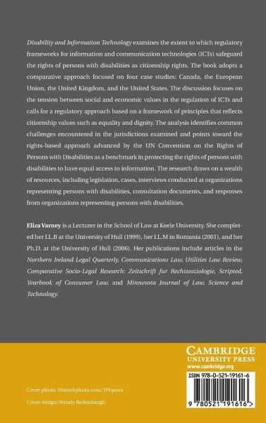 Disability and Information Technology examines the extent to which regulatory frameworks for information and communication technologies (ICTs) safeguard the rights of persons with disabilities as citizenship rights. It adopts a comparative approach focused on four case studies: Canada, the European Union, the United Kingdom and the United States. It focuses on the tension between social and economic values in the regulation of ICTs and calls for a regulatory approach based on a framework of principles that reflects citizenship values. The analysis identifies challenges encountered in the jurisdictions examined and points toward the rights-based approach advanced by the UN Convention on the Rights of Persons with Disabilities as a benchmark in protecting the rights of persons with disabilities to have equal access to information. The research draws on a wealth of resources, including legislation, cases, interviews, consultation documents and responses from organisations representing persons with disabilities.