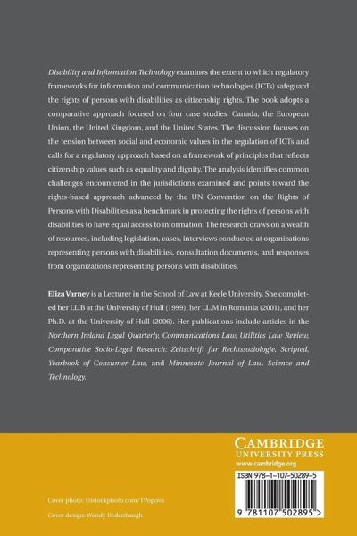 Disability and Information Technology examines the extent to which regulatory frameworks for information and communication technologies (ICTs) safeguard the rights of persons with disabilities as citizenship rights. It adopts a comparative approach focused on four case studies: Canada, the European Union, the United Kingdom and the United States. It focuses on the tension between social and economic values in the regulation of ICTs and calls for a regulatory approach based on a framework of principles that reflects citizenship values. The analysis identifies challenges encountered in the jurisdictions examined and points toward the rights-based approach advanced by the UN Convention on the Rights of Persons with Disabilities as a benchmark in protecting the rights of persons with disabilities to have equal access to information. The research draws on a wealth of resources, including legislation, cases, interviews, consultation documents and responses from organisations representing persons with disabilities.