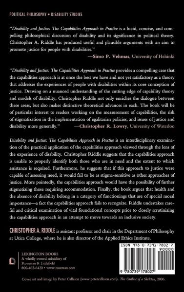 Disability & Justice: The Capabilities Approach in Practice is an interdisciplinary examination of the practical application of the capabilities approach viewed through the lens of the experience of disability. Careful and critical examination of vital foundational concepts is undertaken prior to contextualizing the experience of disability and how we might begin to promote an inclusive society through an application of the capabilities approach.