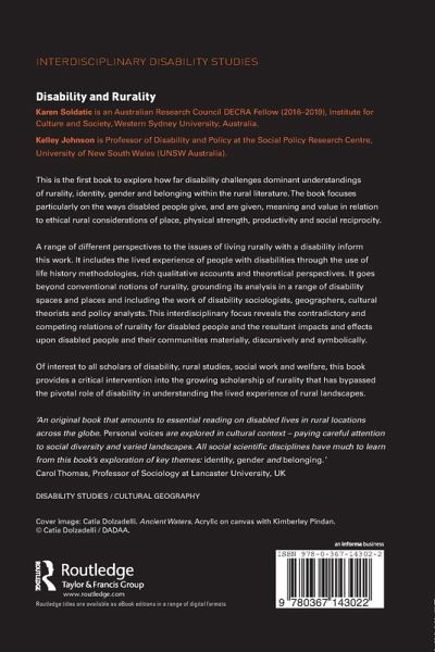This is the first book to explore how far disability, as a social identity, challenges dominant understandings of rurality, identity and belonging. Exploring particularly the ways in which bodies are given meaning and value in relation to core ethical rural considerations associated with physical strength, productivity, and social reciprocity. Using lived experience of people with disabilities through the use of life history methodologies, it goes beyond conventional notions of rurality through grounding its analysis in a range of disability spaces and places and including the work of disability sociologists, geographers, cultural theorists and policy analysis.