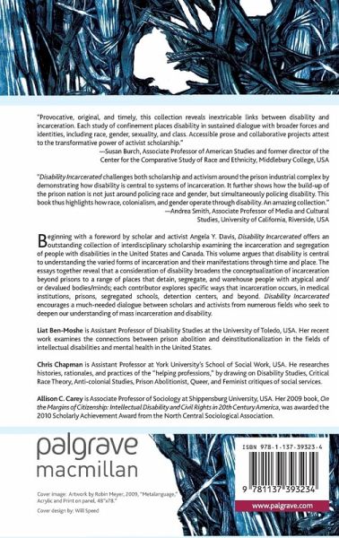 "The essays in Disability Incarcerated demonstrate that racialized and disabled bodies are now, and historically have been, policed in various and complex ways, causing a disproportionate number of people with disabilities to be confined in carceral spaces, whether in institutions or in prisons. The collection compellingly argues for a deeper examination of the interlocking oppressions that have caused othered bodies specifically, disabled, working-class, minority, immigrant, terrorist, and displaced bodies to be watched, controlled, and contained by the prison-industrial complex. . . Disability Incarcerated offers readers a powerful critique of neoliberalism and its exploitation of non-normative bodies, and it certainly has primed the path for future work that bridges critical prison studies and critical disability studies." - Disability Studies Quarterly